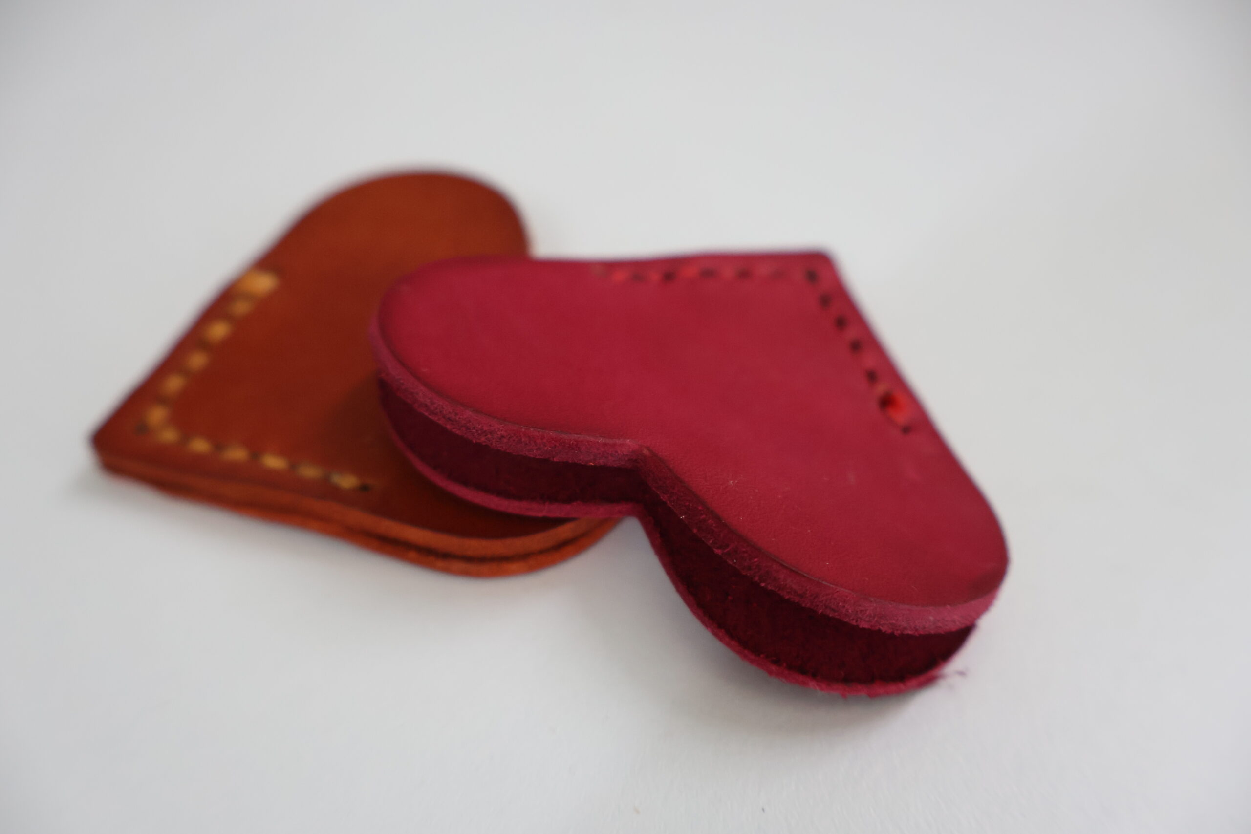Moedeiro/ billeteira de coiro troquelado e tintado de marrón.